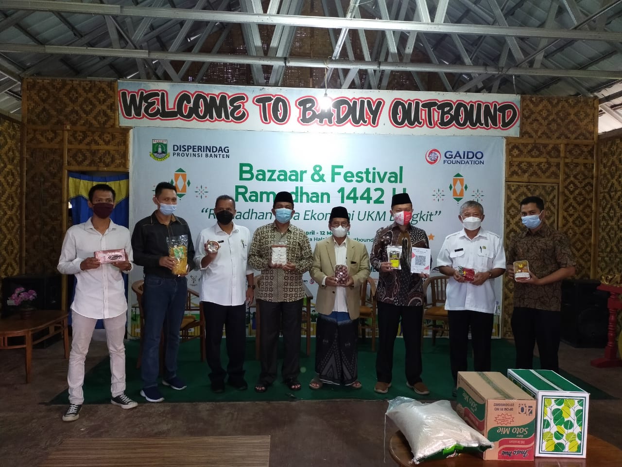 GAIDOFOUNDATION.ORG–Gelaran Bazaar dan Festival Ramadhan 1442 H.,”Ramadhan Tiba, Ekonomi UKM Bangkit” resmi dibuka oleh Drs. M. Agus Setiawan, A.W., M.Si. selaku Kepala Dinas Pariwisata Banten, didampingi Muhammad Hasan Gaido selaku, Founder Gaido Foundation, Sukandar, Kepala Bidang Perindustrian Disperindag Banten, KH. Anang Azharie Alie, Ketua Presidium Forum Silaturahim Pondok Pesantren (FSPP) Banten,dan KH. Sulaiman Effendi, Ketua Insan Tani dan Nelayan Indonesia (INTANI).