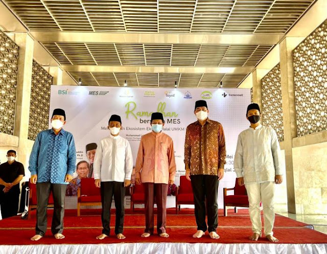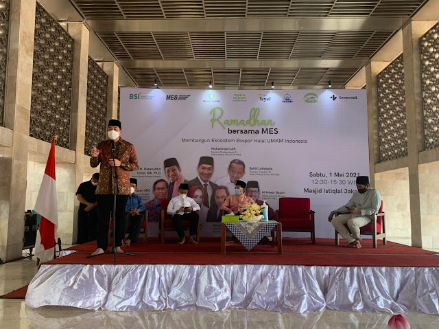 Hadir pula M. Anwar Basori, Ketua Komite Ekspor Halal PP MES dan KH Nasaruddin Umar, Imam Besar Masjid Istiqlal yang memberikan sambutan pada acara ini; serta narasumber Dr. Kasan, Dirjen Pengembangan Ekspor Nasional Kemendag RI; Kokok Alun Akbar, Direktur Retail Banking Bank Syariah Indonesia.